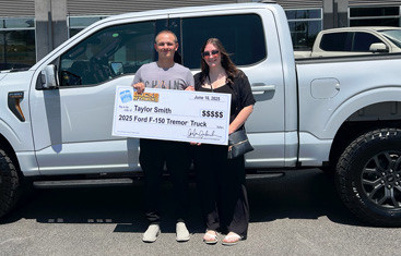 The Smith’s became the first winners on the Idaho Lottery’s game Bucks n’ Trucks. The couple worked with Corwin Ford in Nampa to select an Oxford White Ford F-150 Tremor with all the top-of-the-line features. The keys were delivered to Taylor and Alicia shortly after Father’s Day.
