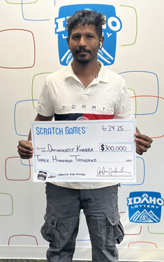 Long haul trucker Davinderjit Khabra, from Elk Grove, California, was passing through Idaho when he pulled into the Pilot Truck Stop in Mountain Home. He purchased a $30 Wealth and Riches Scratch ticket and won the first top prize on the game of $300,000!