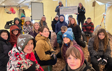 Washington Elementary in Sandpoint literally puts the outdoors into their outdoor education. Across the street from the main building, adjacent to the play yard for the school, in a field, is a large tent that houses their Outdoor Education Classroom. Inside the tent is their learning lab and tree stump seating for every student from each classroom who visits the tent regularly – even in the winter when the students have to wear their winter coats and galoshes.