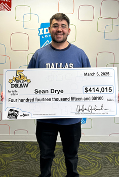 No one wanted to believe Sean Drye, Nampa, that he had won the 5 Star Draw jackpot. Not his wife, not his mother. Sean barely believed it himself. After only playing the game for a few months, he scanned his ticket with the Idaho Lottery’s mobile app in early March and was shocked at what it said.
