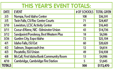 The Idaho Lottery hosted the most successful series of events for Scratch for Schools in the program’s 24 year history. Exactly 500 schools competed in one of 11 events, from the small intimate venue of the Cambridge Fire Station to the mega-sized event with 108 schools at the Ford Idaho Center.