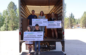 Already 85 degrees in the sun when the group arrived just before 10 am, the Idaho Lottery’s community outreach team was making a special, summertime Classroom Wishlist delivery to Basin Elementary, Basin Middle School, and Basin High School – the entire school complex located at the edge of town against the Boise National Forest.