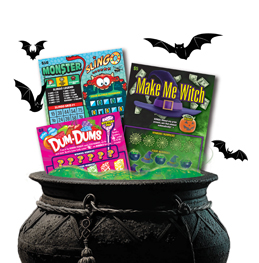 Last month we previewed Dum-Dums, the first of its kind, strawberry-scented Scratch game, partnering with Spangler Candy. Joining Dum-Dums in the spook-tacular game line up are the $5 Make Me Witch Scratch game, and the $10 Monster Slingo.
