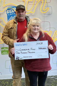 Catherine Hicks and her husband have a daily tradition in Rupert. At the end of their day, she buys a couple of Idaho Lottery Scratch tickets and they both go down to the river to talk about the day. They tell each other about how everything went while she plays her tickets. One day in March she was playing a Monster Slingo ticket.