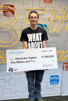 BOISE, Idaho – Alexander Higbee, Mackay, has a simple philosophy for life: live for the moment. On Monday, that moment found him in Boise claiming $1,000,000 from an Idaho Lottery Scratch ticket he purchased last week on his way home from work at Jack’s Travel Plaza in Arco.